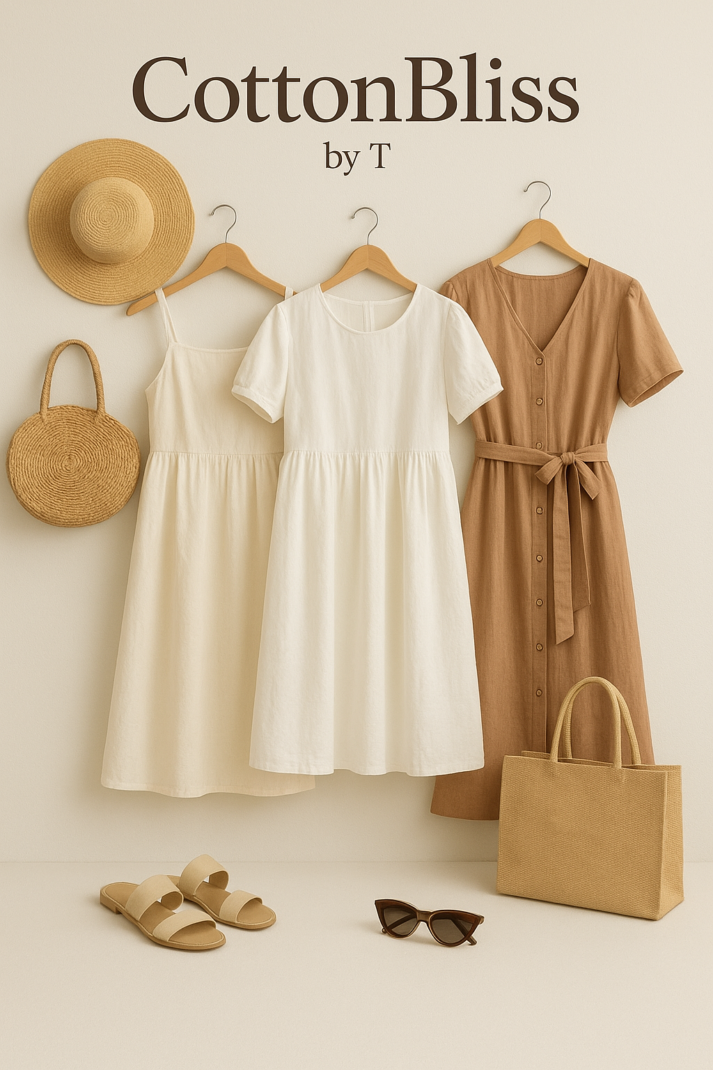 Our cotton dresses and accessories offer the perfect blend of elegance and ease.